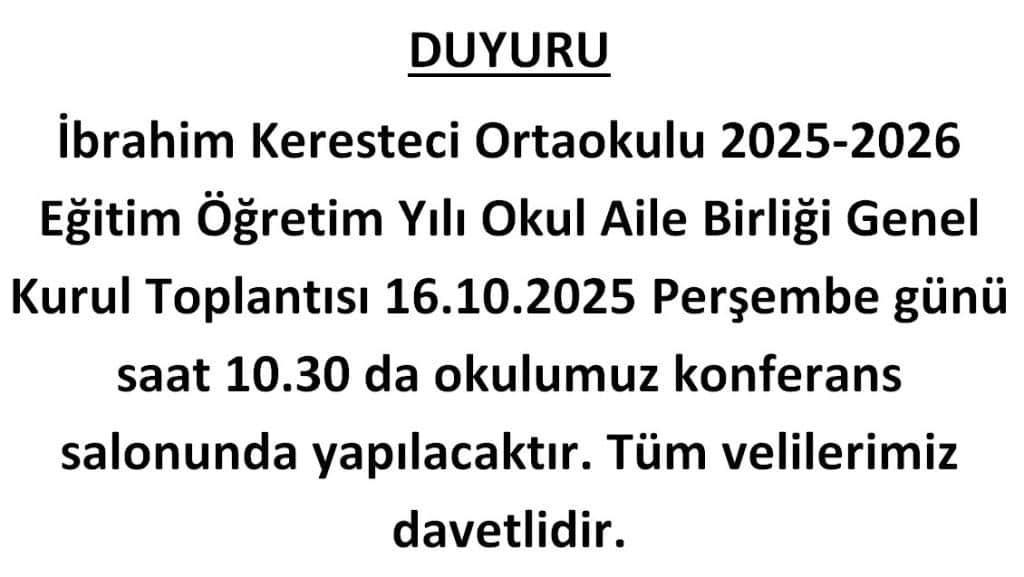 2025-2026 Eğitim Öğretim Yılı Okul Aile Birliği Genel Kurul...